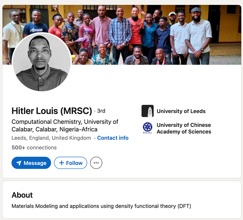 A screenshot of Louis’ LinkedIn profile before we reached out to him. Racking up 35 retractions in just 24 months, chemist Hitler Louis has scored a place on our leaderboard. The papers…