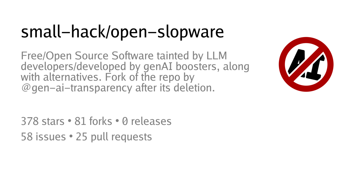 Free/Open Source Software tainted by LLM developers/developed by genAI boosters, along with alternatives. Fork of the repo by @gen-ai-transparency after its deletion.