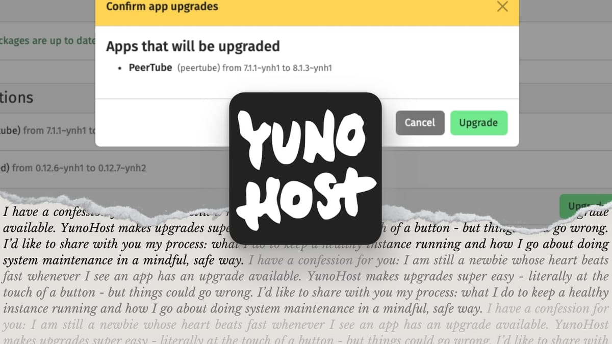 A post that explains how to keep a YunoHost server running healthily with system updates and how to run application updates (and revert back to a snapshot if things go awry).